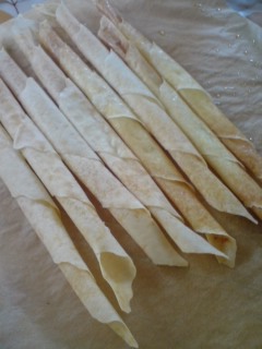 久々、帰ってまいりました食べ物ブログ(笑)イベント準備中も簡単な物を作ってました☆実は8月末にいつもはクレイの講習をしている青少年センターの夏休みの企画で子供に料理を教える事に低学年対象なのでオーブンかホットプレートでという限定春巻きの皮で出来る簡単パリパリおやつです単純です春巻きの皮にマーガリンを塗ってその上にお砂糖をふりかけ、全体に伸ばし4等分に切りますそれで、こんな風に三角の山を上にしてくるくる~と巻きます巻き終わりは普通の春巻きのように小麦粉と水同量を溶いたのりで引っ付けます200度に予熱したオーブンで12分完成~☆仕上げにチョコかけなどアレンジも出来ます☆これと、お麩のお菓子をホットプレートで2品を1時間半で作る予定上手く出来るといいな(*^_^*)私はマーガリンを選ぶ時、成分表のナトリウム含有量が少ないのにしますそうするとお菓子に使いやすいですでもパンには少し味気なくなるのでパン用は違う種類を買ってます
