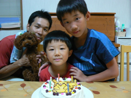 こう君、6歳です。早いもんだな~(*^_^*)早く楽になりたいような下の子は幼いままでいて欲しいような親の勝手な想いとは関係なく日々、成長しております誕生日の夕飯を聞くと「お魚と醤油をかけたお豆腐と~(冷奴)きゅうりとキャベツのサラダと~ご飯のたまご!(卵かけご飯)」・・・おじいちゃんですか??完璧な和食でございました(笑)旦那様に、普通の夕飯やん!ステーキとかカツとか、焼肉とか?何かなかったん??と聞かれて「あ!!」と言った顔が可笑しかったですケーキのアップ♪頑張ったでしょ^m^季節のフルーツがあまりない時期なのでデラウェアとチョコ(なんて言うんだっけこれ)で中はバナナを挟んでますピカチュウはクッキーにアイシングとチョコで♪アイシングは簡単に、卵白を使わずレモン汁で粉糖を溶かし食紅で色付けをしました甘くなりすぎず、このアイシングは好きです♪ジップのミニ袋に入れて端を小さく切ってペンにして書きました。チョコも袋に入れたまま湯銭なのでとっても簡単♪お泊り保育はブルーな顔で帰ってきました何のトラブルもなかったようですが寂しかったんでしょうか・・でも男のプライド(?)「言いたくない」と理由は分らずじまいです私は心配で眠れませんでした体調が万全でないのに行かせてしまった罪悪感と心配喘息が出ると夜中に何度も呼吸が止まるので(無呼吸症候群のように吸ってから息を吐くまでに何秒も間が空くの)座ったまま立て抱きにして抱きかかえて眠った時の事が頭の中に何度も出てきて先生は気がついてくれるんだろうかと心配で心配で(T_T)無事に帰ってきてほんとにほっとしました週末は怒涛の忙しさ土曜日は喘息の病院へ行きたいした事はなかったので旦那様の実家に行き日曜日はゆう君が仁徳天皇陵に行きたいと言うので堺市博物館と近くにあったサイクルセンター2つとも喜んでたな~帰りに自転車屋さんに行きそこから知り合いのお祝いを買いにSATYへ次の日は旦那様の自転車屋へ付き合いそのまま自転車の友達のお家で枝豆パーティー(お家で作っているらしい)お餅つきにも行かせてもらったお家です。その時に妊娠中だった2人が無事に元気な赤ちゃんを産んでました久しぶりに首のすわってない赤ちゃんこわごわ抱っこさせてもらいました♪この子達の成長も楽しみです(*^_^*)