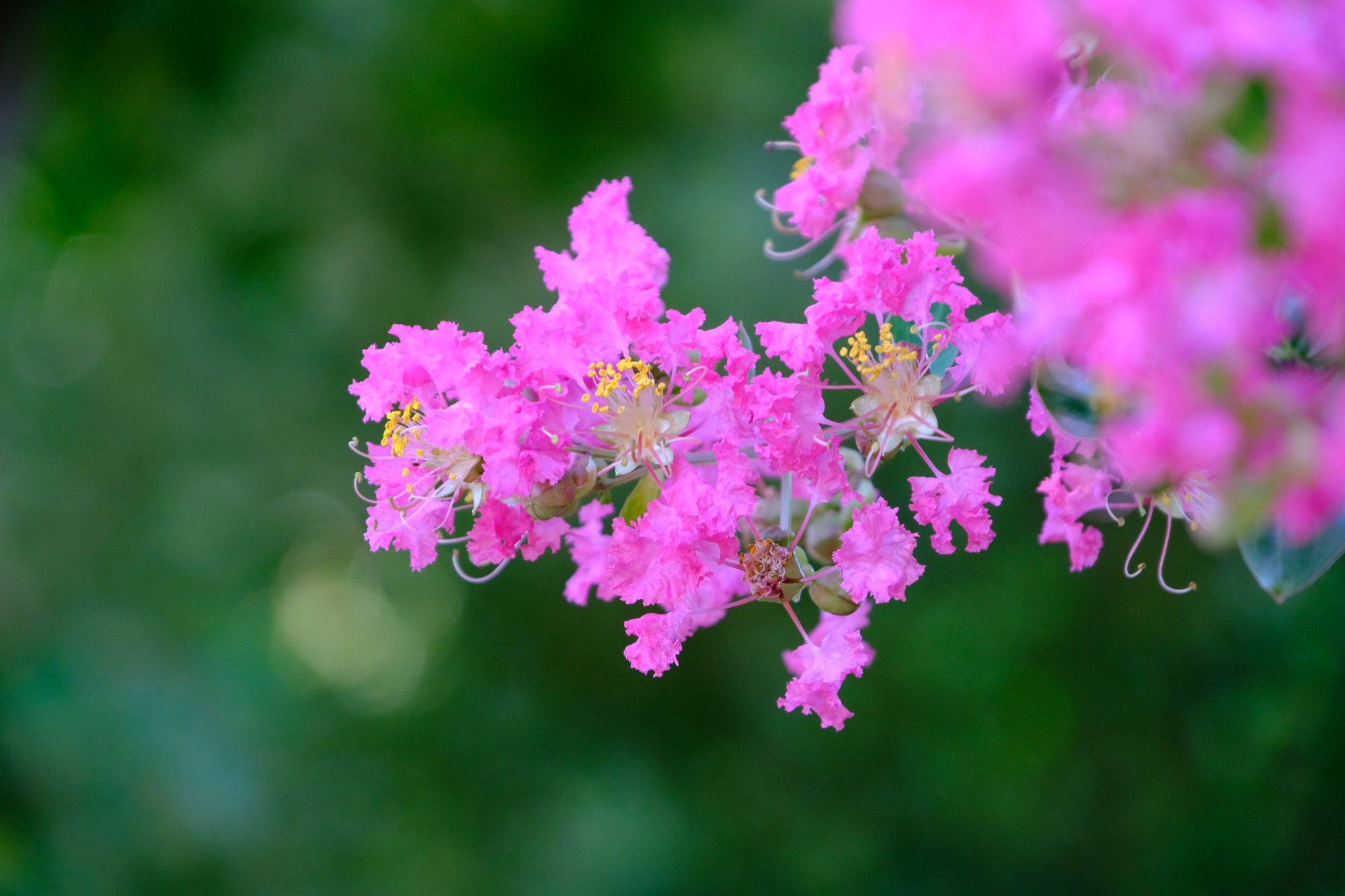 百日紅(サルスベリ)って、いつまで咲いているのでしょう?夏の象徴みたいなお花で、早い時期から見かけましたが、いまだに咲いていますね。鮮やかな色の花がとぼしい真夏に、目立ちます。ピンクのふわっとしたサルスベリ。(#^.^#)上よりは少し濃いけれど、ふわふわ感はあります。遠景。沢山咲いています。濃い色と淡い色のと。白ではなく淡いピンクでしょうか。こちらは、完全に白。白の百日紅が一番好きかもしれません。
