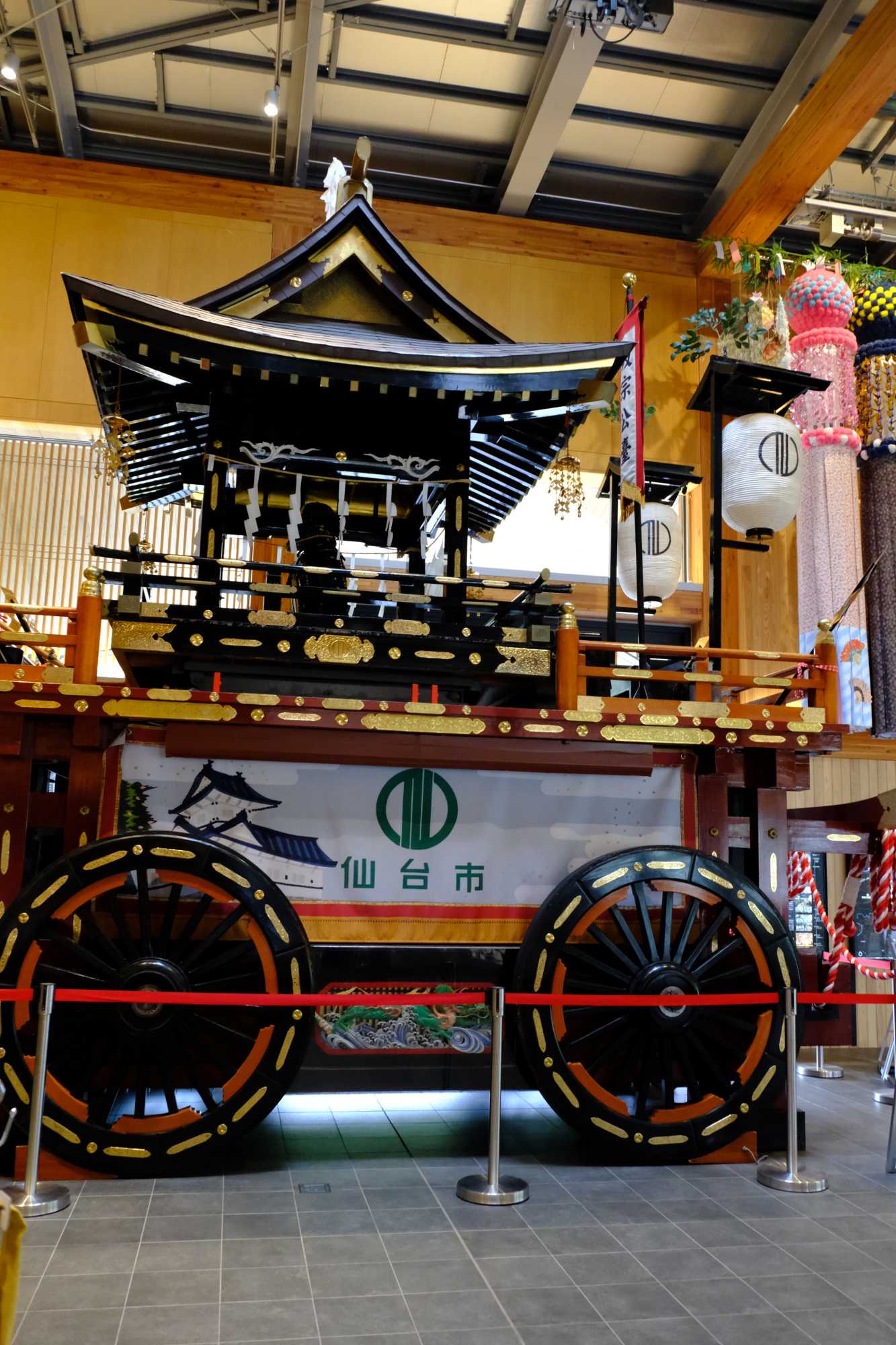 前回からの続きです。なかなか見ごたえのある仙台市博物館をあとにして、道路の向かい側の建物に移動しました。まだ新しい緑彩館です。ここは無料で利用できる施設です。「仙台・青葉まつり」で使われる山鉾「政宗公山鉾」だそうです。このお祭りでは12基の山鉾が出るようです。乗っているのは政宗公。そして、仙台といえば七夕。そのシーズンには来ることはないだろうから、ほんの少しでもここで見られてよかったです。(#^^#)カフェもありました。さすがに朝食が多すぎてまだおなかがすきません。手前はオリジナルジンジャエール、むこうはオリジナルコーラです。(どちらも550円)仙台市博物館と緑彩館からは「るーぷる仙台」のバス停が近いです。そこで平日なので20分間隔のバスを待ちました。次の仙台城跡で下車。この鳥居は後で出てくる護国神社のもののようです。仙台城は焼けてしまってありませんが、標高約130mに造られ、東と南を断崖が固める天然の要害に築かれていました。将軍家康の警戒を避けるために、 あえて天守閣は設けなかったといわれています。礎石がならんでいました。城跡からは仙台市街が一望できます。広瀬川も見えました。仙台というと、これが一番有名でしょうか。伊達政宗騎馬像です。この像や仙台博物館にあった伊達政宗画像も独眼ではなく双眼に描かれているのはなぜなのでしょう。伊達政宗は幼少のころ、疱瘡にかかって右目を失明し眼球が飛び出してしまって人前にでられなくなったので、あえて眼球をえぐらせて隻眼(独眼)にしたとのこと。ただし、自分の死後につくらせた像には「自分は生まれながら隻眼ではなく、よって親より授かった形を欠くのは親不孝であるから双眼につくるように。」と命じたのだそうです。最初の鳥居はこの護国神社のものでした。この日は結婚式が行われるそうで、敷いてある赤いじゅうたんを踏まないようにと参拝客に注意がなされていました。ガイドブックには必ず載っていた「青葉城資料展示館」に入りました。しかし、お土産物屋さんの二階部分だけをつかった展示館でした。入館料770円。最初に見たハイビジョンCG映像「謹製 仙台城~だって、本丸だもーん~」というのはおもしろかったのですが、展示品は思ったほどは多くなかったです。ガイドブックには専用スコープを首から下げイヤホンを右耳にして30分程度、城跡のあちこちを見て回る「仙台城VRゴー」というのを勧めていました。(この資料展示館で借りる。800円)しかし、VRゴーをしているような人を仙台城跡では一人も見かけませんでした。('◇')ゞ少し雨がぽつりと。仙台城跡にはタクシーがたくさん人待ちをしていたので、それに乗って仙台駅へ行くことにしました。夜も見た、ピカチュウの奥にはニンフィアとイーブンもいました。かわいい。(#^^#)これが全体です。新幹線「はやぶさ」に乗るまでまだ時間があったので、仙台名物の三つ(牛タン、お寿司、ずんだ)をクリアすべく苦手なずんだを食べてみました。('◇')ゞ枝豆は大好きなのですが、ずんだ餡はどうもあまり好みではないのです。でも、比較的おいしく食べられ、のどがかわいていたせいかずんだシェークもまあまあでした。仙台駅にあったステンドグラス。お留守番のうさぎのポロリが心配なので、早めの新幹線で帰路につきました。(おしまい)