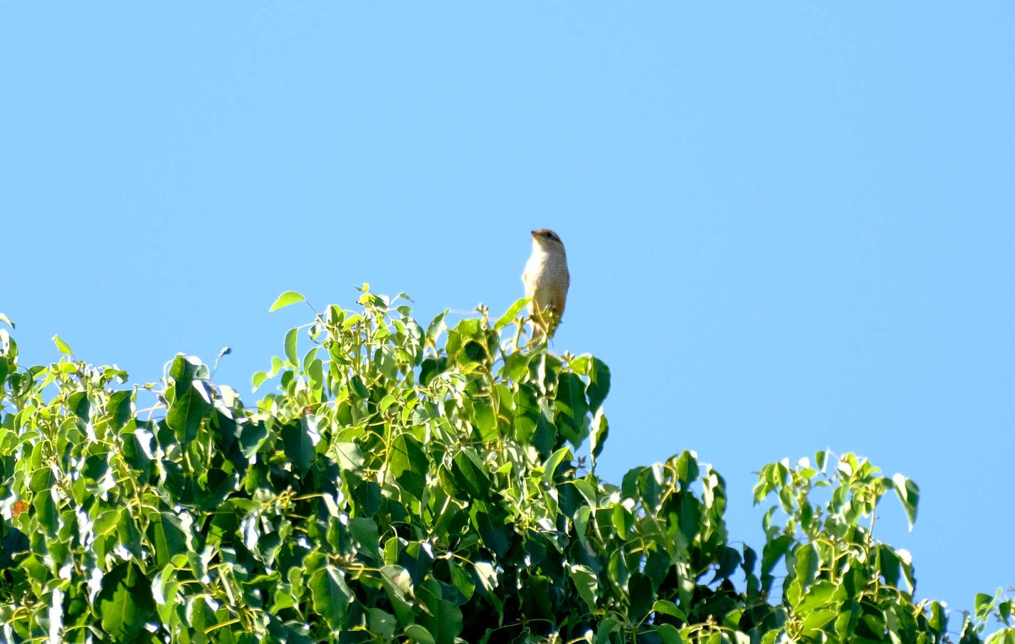 モズの高鳴きを聞いてからだいぶたちました。未だに高鳴きを聞きます。モズは高い高い木のてっぺんなどに止まって、よく通る声で鳴いています。モズのメスです。少しやさしいお顔をしているかな。てっぺんにいても、たえずきょろきょろしていました。このあたりをなわばりにしているわよ、と宣言しているのでしょう。お目目がまんまるでかわいい。(#^^#)すっぴょんと飛んだあと、そのまま遠くへ飛んで行ってしまいました。毎年見ていたセンニンソウは刈られてしまって何もなくなりました。仕方なく、あちこちで探して。思わぬところで何とか見つけましたが、あまり近寄れないところでした。('◇')ゞそれでも、今年も見られただけでもよしとしましょう。