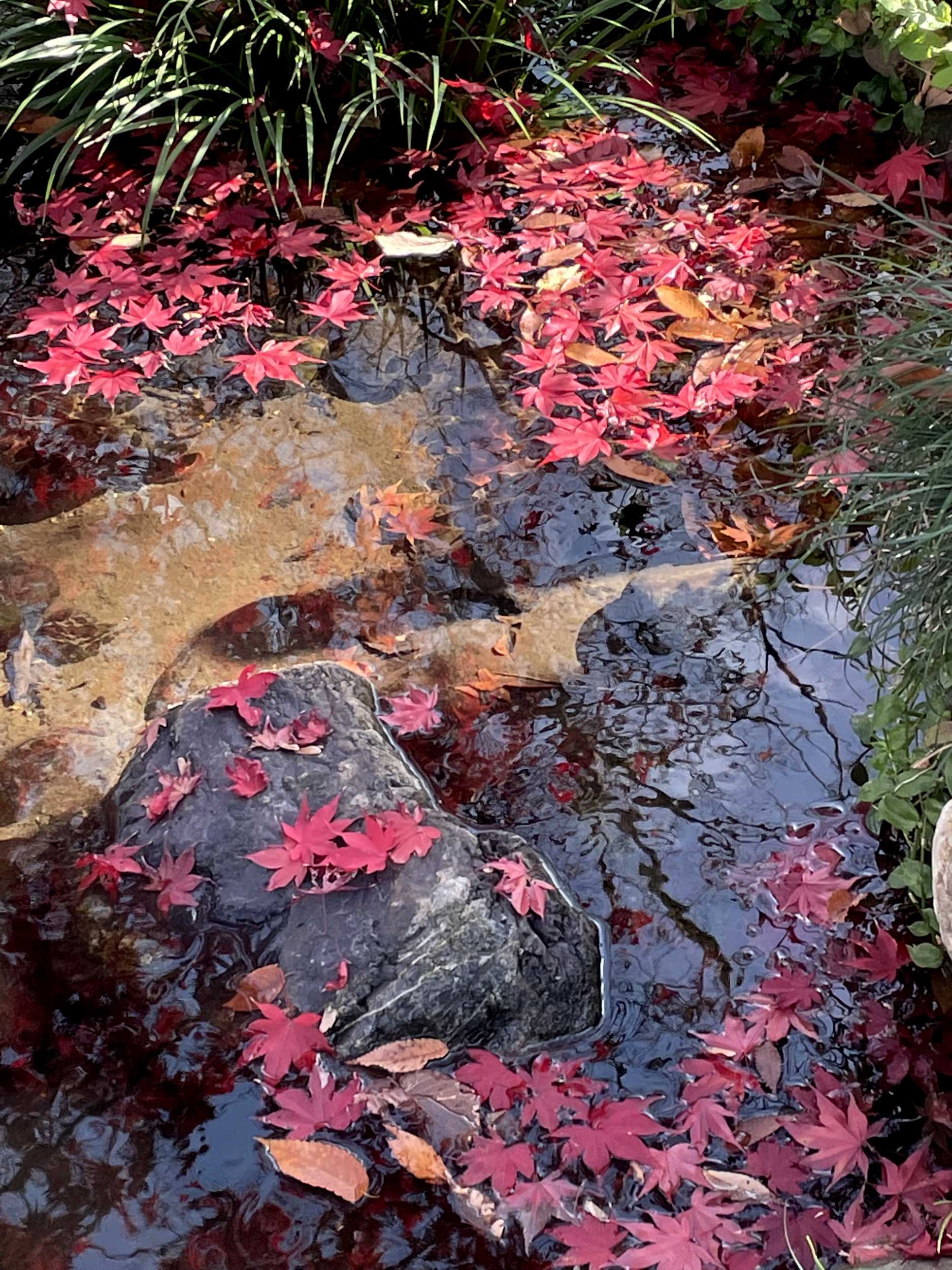 なかほどには水面映りする紅葉も。