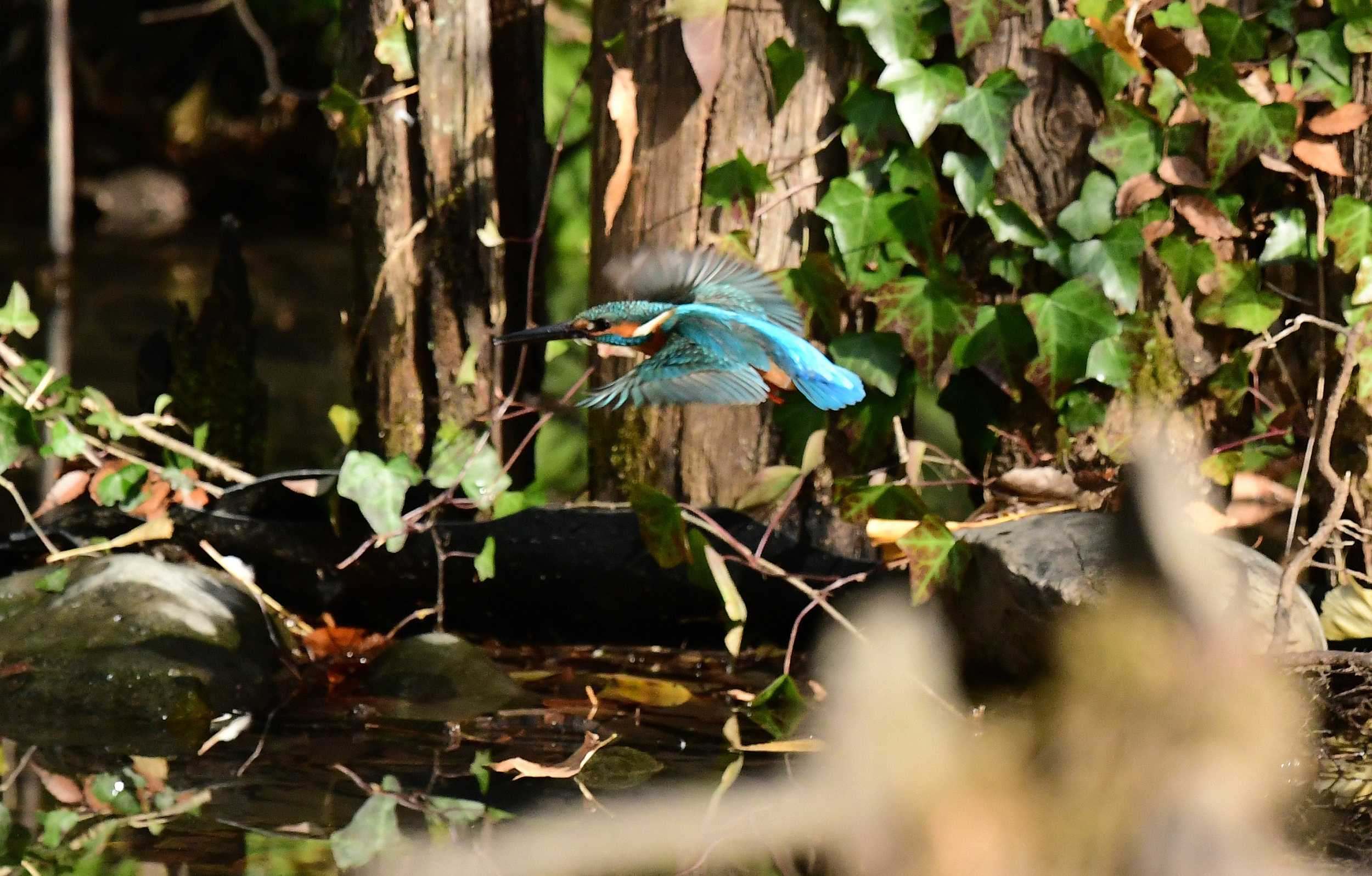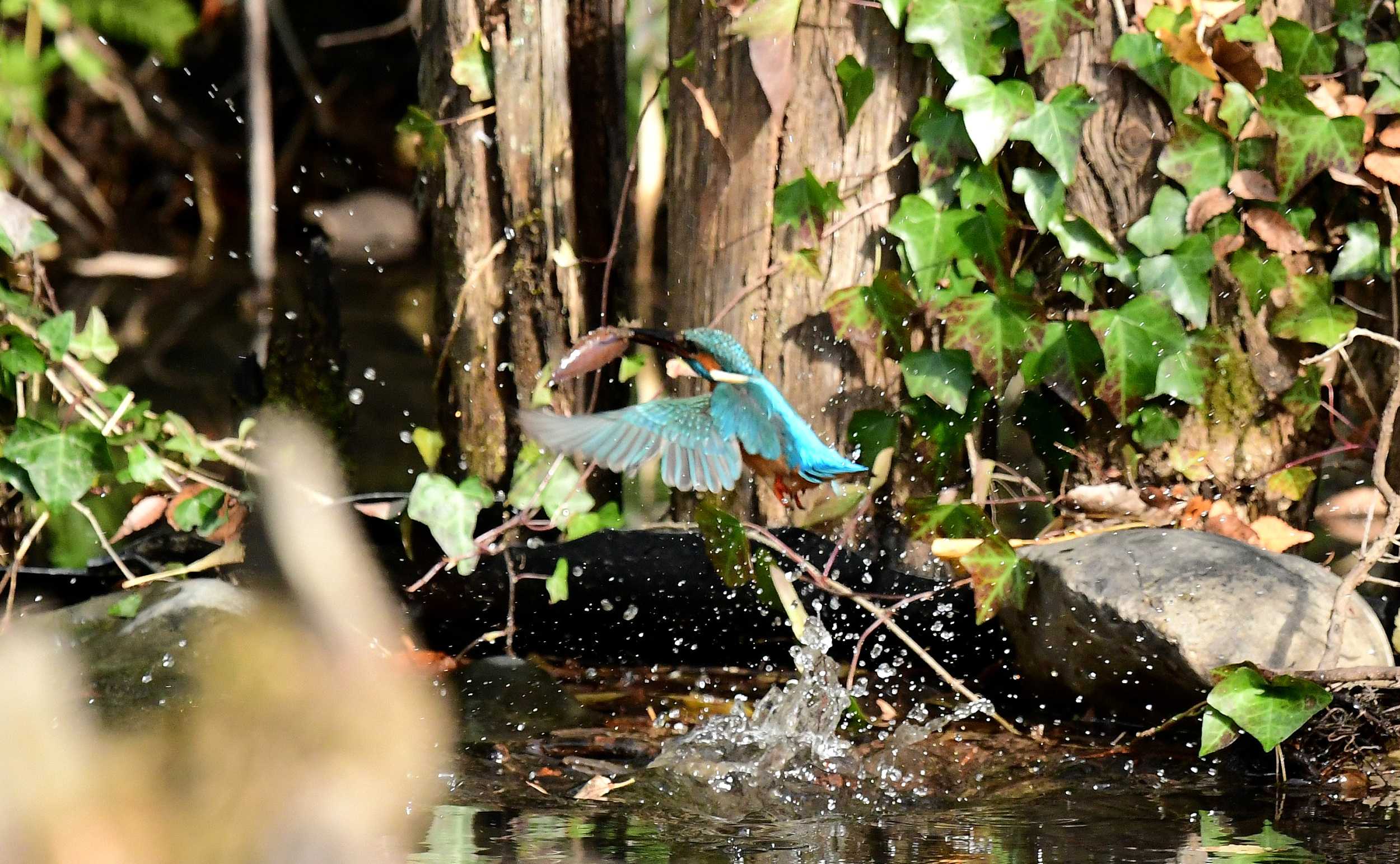 カワセミはダイビングして獲物を狙います。