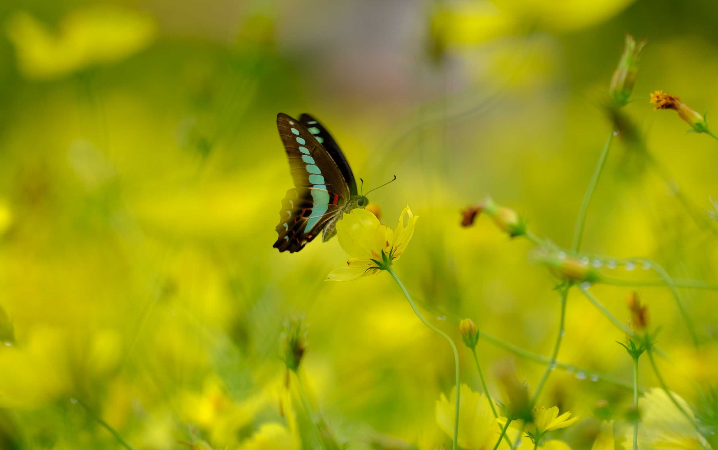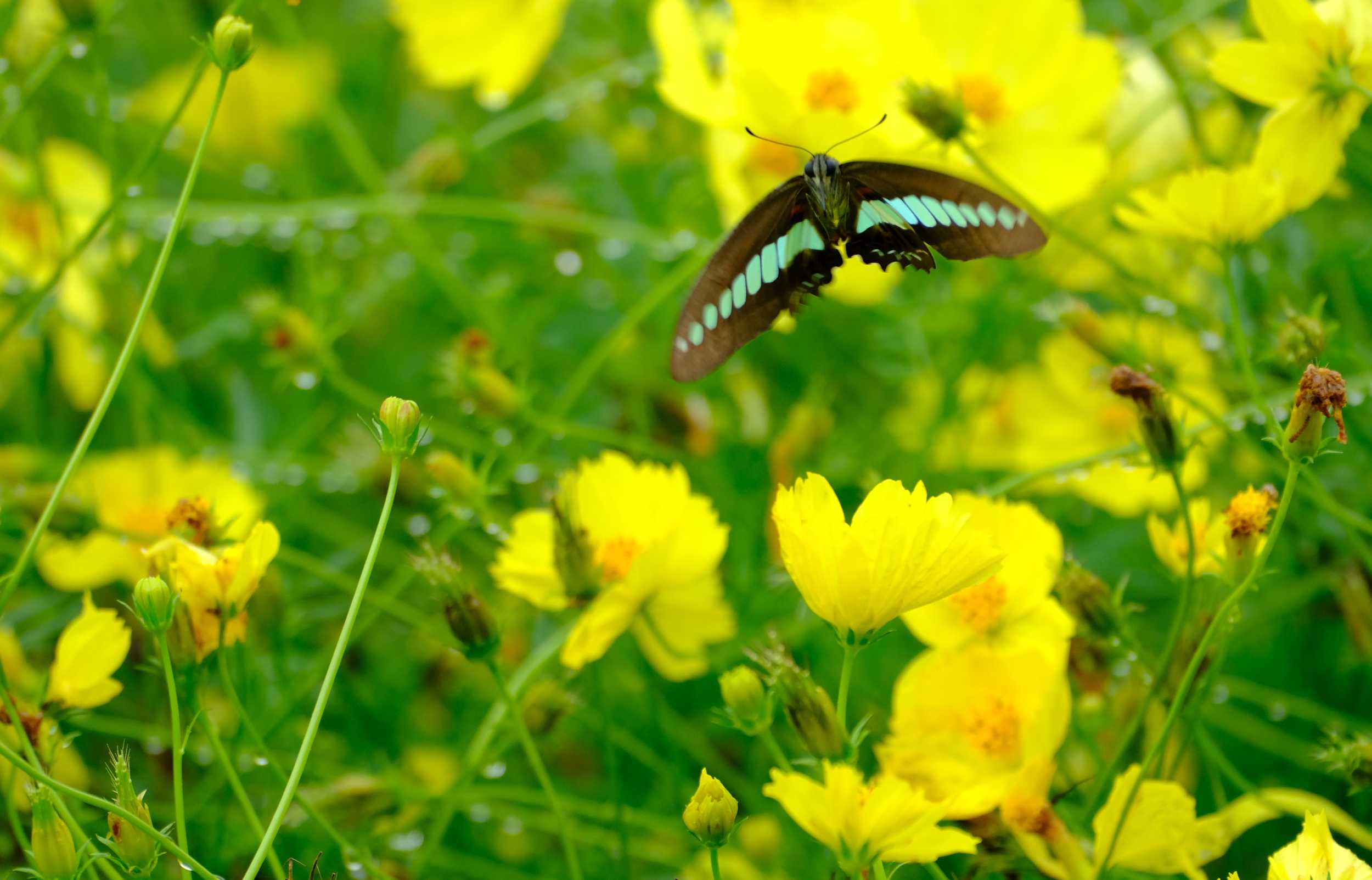 レモンブライトの中を飛ぶアオスジアゲハ。