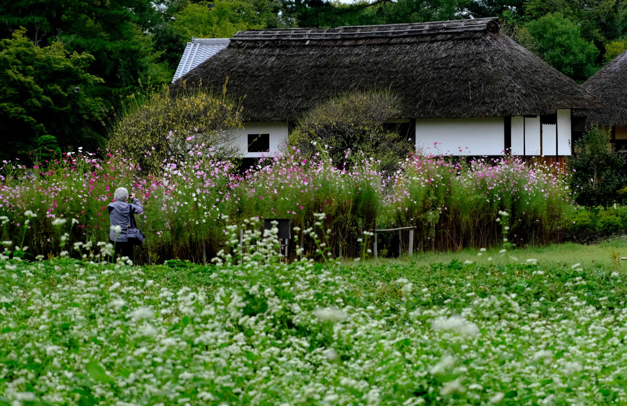 古民家前の秋桜(センセーションなど)はよく咲いていました。