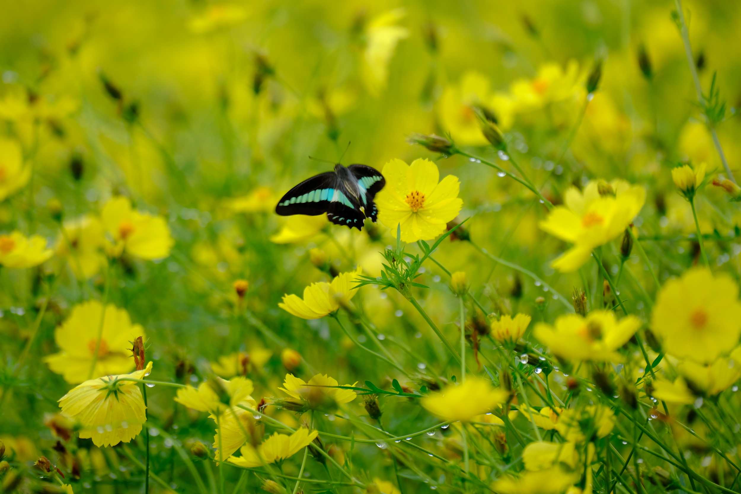 花の丘のキバナコスモス「レモンブライト」には昆虫も来ていました。