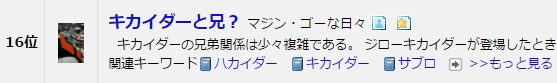 キカイダーの兄弟関係は少々複雑である。 ジローキカイダーが登場したときは、「最初の作品」と言うことで前後のつながりというものは基本的にないわけで。兄弟と言ってもサブロー=ハカイダーとジロー=キカイダーが兄弟と言う設定だった。 ハカイダーが出てきて弟が兄を狙うと言う設定で出てきたのだが、そこへまた兄のキカイダー01=イチローが登場。キカイダー01はジローより先に光明寺博士に作られたロボットでジローの兄にあたる。しかしその頃ハカイダーはプロフェッサーギルの脳を入れたことで兄弟から外れ、サブローではなくなってしまった。そして話はキカイダー&01=イチロー・ジローの兄弟で対抗する流れになった。そこへまたまた!キカイダーOO=レイが登場!OOはジローが組み立てたロボットであり、『一番下の弟』と言うことになるが・・・?実際には設計がゼロワンよりも古く1番古い兄と言う立場になる?のです。が、機械の体で実体化したのが今回が実は初めてであり、ジローが組み立てたことで本来は『ジローが父』になる・・・のか? それとも『兄になる』のか?非常に複雑な関係となった。 一応、ストーリーの中では『ジローは兄』となっておりますが・・・ 設計図だけならOO→01→キカイダー→ハカイダーと言う流れになるんですけど 実際には01→キカイダー→OO⇔ハカイダーになっており、人間関係・・・いやさ、人造人間関係は 複雑でしたねぇ。 皆さんはこの関係、納得できてました? ま、深く考えてもしょうがないんですけどね(笑) にほんブログ村見たら…押して~♪キカイダー01 3 【DVD】防災リュック リュックサック VIAGGIO 7077【避難リュック/のみ/避難袋/登山/バックパック/デイバッグ/キッズ/防災グッズ/防災袋/非常用持ち出し袋/遠足】