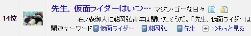 ありがとうございます。 特撮ヒーロー 第11位 仮面ライダー1号は…大した能力じゃないんだ。 1号が大した能力じゃなくなっている時代だと、2号も似たり寄ったり状態ですね。 V3はどうなるんでしょうねぇ? などと、また考えてネタになっちゃいますね(笑) また次回もよろしくお願いします。 何がだぁ? (^Д^)ぶひゃひゃ にほんブログ村見たら…押して~♪【送料無料】 仮面ライダー / 仮面ライダー1号 コレクターズパック 【BLU-RAY DISC】 【ポイント10倍】アイリスオーヤマ 防災頭巾 シルバー 難燃加工 BZN-300 (BZN-300)アイリスオーヤマ 防災頭巾 シルバー 難燃加工 BZN-300 (BZN-300)【ポイント10倍】