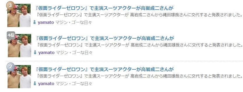 『仮面ライダーゼロワン』で主演スーツアクターが高岩成二さんから縄田雄哉さんに交代すると発表されました。高岩成二さんは主演スーツアクターとして平成仮面ライダー全20作品のうち18作で主演されております(クウガと響鬼以外ですね)。まさに「ミスター平成仮面ライダー」であります!!いつかこんな日が来ると思っておりましたが、ついにその日が…って、引退ではありません(笑)一方、新しい主役を演じる縄田さんはこれまでドラマ、映画、舞台など幅広い分野で活躍されており。『仮面ライダーエグゼイド』では仮面ライダーゲンムのスーツアクターであのゾンビライダーを『仮面ライダージオウ』では2号ライダーの仮面ライダーゲイツとして1年間、高岩さん演じるジオウとともに戦っております。高岩さんのコメント『気がつけば自分も50歳という節目ですし彼にアドバイスするところなどは正直まったくないですね。安心して見ていられる部分が多々あります。』とのことで、しっかり後輩をサポートしていきたいとの事でした。縄田さんのコメント『これまでドラマや映画などいろいろな現場を経験してきましたが、いつかは主役をやりたいと思っていたので決まった時は単純にうれしかったです。でも、そのあとは不安が襲いかかってきましたね(笑)』このセリフでオッサン的には”選ばれる者の恍惚と不安、二つ我あり”を思い出しました。↑セリフを知らなくても問題ありません(笑)令和になって新しい仮面ライダーゼロワンが登場。そして主役の仮面ライダーを演じるスーツアクターも新たな若い人に交代です。令和の”新”仮面ライダーに期待いたしましょう!にほんブログ村見たら…押して~♪仮面ライダーゼロワン&オール仮面ライダーだいひゃっか【合計3000円以上で送料無料】ゼロワンフィールド シュラフ 寝袋 MG-ZRFS30 グリーン 封筒型 アウトドア 防災用(代引不可)【送料無料】