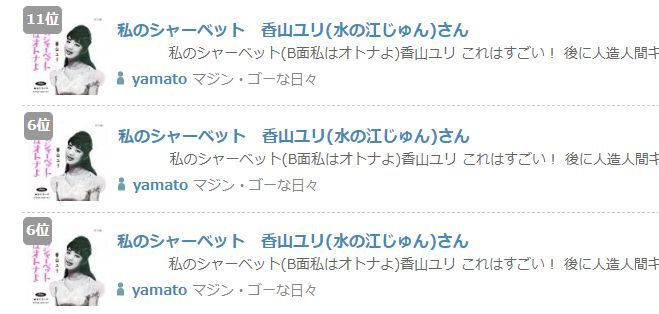 私のシャーベット(B面私はオトナよ)香山ユリ これはすごい! 後に人造人間キカイダーでミツ子さんを演じた『水の江じゅん』さんのレコードです。多分、1962年頃のレコードと思われますので・・・香山ユリさんは1950年生まれとなっておりますからなんと11歳でレコーディングしておられますね。11歳で南斗聖拳しっかりした歌声でしょうか!歌うまいなぁ!私のシャーベットいいですねぇ!この曲は今でもイケると思いませんか?ダメ?(笑)B面の”私はオトナよ”の方も彼女の歌声と愛らしさを楽しめると思います。いやぁ、って事は!このレコ-ドジャケットの写真は11歳って事でしょうか?あ、だから”私は大人よ”って事か(笑)ううむ、確かにレコードジャケット写真のお顔のクリクリした大きな瞳は・・・水の江じゅんさんですねぇ(笑)うむ!これからこの曲はキカイダーファン共通の聖なる歌となりましょう!当時のキカイダーファンよ!耳をかっぽじって聞くがいいぃぃぃぃぃ~ッ!!聞き惚れるがいいぃぃぃぃぃぃぃ~~ウリィィィィ!!今からこの曲がヒットしてもいいんだぞー!!(^O^)~♪にほんブログ村見たら…押して~♪USED【送料無料】スタコイ・ポップス VOL.1 [Audio CD] オムニバス; キューティーQ; 梅木マリ; 森山加代子; 香山ユリ; 坂本九; 斎藤チヤ子; 赤木二郎; 菊地正夫; ジェリー藤尾 and 富永ユキ尾西食品 アルファ米「ドライカレー 10食セット」5年保存食 非常食(ご飯 アルファー米 尾西 アルファ米 賞味期限5年 アルファ化米 非常食セット お米 ごはん ライス 非常用 災害用 サタケ 保存食セット 防災セット 防災グッズ 防災用品 備蓄品 地震対策 避難セット)
