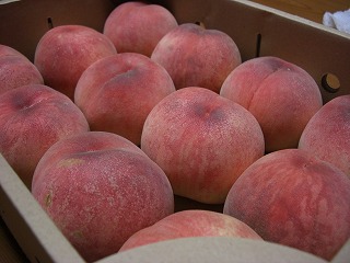 おいしい桃が食べたくて福島県の産直に行ってきましたあと2~3日で最盛期になるそうですお店は活気づいていました。 あかつき 焼星(ぎょうせい)