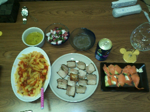 ホワイトデー当日は仕事だったので、この前、遅れてバレンタインのお返しをさせて頂きました。それがこちら左からミネストローネ風パスタ豚バラブロックの香草焼きアボカド、クリームチーズ、スモークサーモンの前菜上にいってタコとオクラのマリネです。マリネの両サイドにハチミツベースと醤油ベースのソースを用意しました。これを最初からソースまで作ったので5時間かかりました(-_-;)でも奥さんに喜んで頂けたので良かったかな(^-^)んで今回はこちらを飲みました。赤ワインのスパークリングです。赤のスパークリングだと甘めのが多いんですが、これはしっかりと、渋味と酸味があって、私は好みなんです。 機会があったら是非試して見てください。たしかカルディでも売ってたと思います。←カルディ商品リンク←カルディショップリンクにほんブログ村