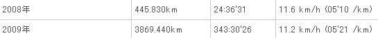2009年はおっさんにとって、実質的にはランニング元年でした!結構走りました。もうちょっとで年間4000kmでしたが、ホンマよう走ったと感心してます。こんな感じでした↓2008年は10月以降真剣に走り始めて、最初のレースはよこはま月例マラソンの3kmでした。その後11月、12月とよこはま月例マラソンに出て、ランニングを習慣的にするようになったわけです。そして2009年、ランネットで初めてエントリーした谷川真理ハーフマラソンに出場!その後自分でもよう頑張って走ったと思います。毎月結構ええ感じで走り続けました!惜しむらくは4月。この月は仕事に追われてほとんど走れず。結果、かすみがうらマラソンも大撃沈!でもその屈辱があったからこそ頑張れたのかとも思う。4月はかすみがうらの42kmを省くと、40kmに満たない走行距離でした。そしてその反動でその後は頑張ってきた感じ。400km越えは5月、8月、10月の3回。5月はかすみがうらリベンジに燃えて。8月は暑い中、毎日のようにジムに通ったり、外で走ったり。そして10月はオクトーバーランで頑張った。とにかくよう頑張ったと思います。で、ここ4ヶ月は走行距離もさることながら、ランニングの内容も重視してきました。それで平均速度も速くなってきて、12月には初めて月間の平均速度がキロ5分を下回りました!2009年にランネットでエントリーした大会は全部で15レース。内訳はフルマラソン、5(ベスト:3時間3分50秒、12月、防府読売)ハーフマラソン、7(ベスト:1時間26分24秒、11月、横浜)15km、110km、15000m、1我ながら、よう走ったなぁ~と感心します。2010年もいろいろなレースにエントリーしてレースを楽しみたいと思います。このほかに、ランネットでエントリーした大会が重ならんかった月は全てよこはま月例マラソンに出ました!2010年の最初のレースは去年に続いて谷川真理ハーフです。来年も頑張るどぉ~!!!!=3ほな、 良かったらクリックしてみてね↓にほんブログ村