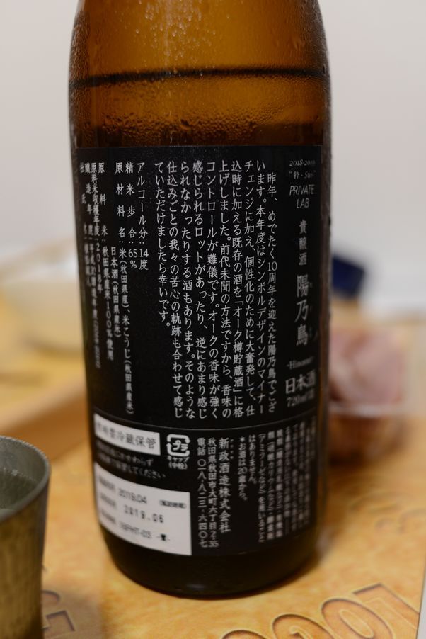 新政酒造の陽乃鳥です。