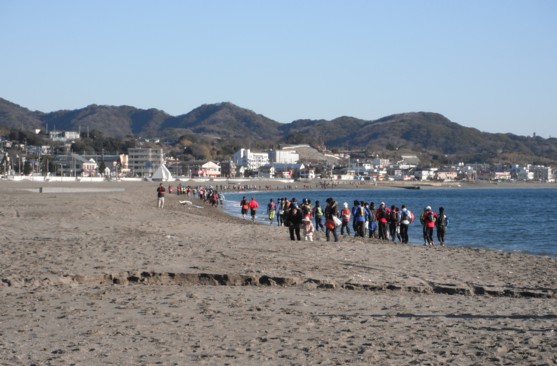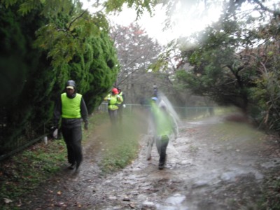 4時起床、4時50分に家を出てて40Lザックを背負っての雨中ランで、地元駅まで4Kを走る。どこに行ったのかと言うと、鎌倉アルプストレイルレースのボランティアでした。 今まで、選手・ボランティア合わせて4回走っている大会で、当然のようにボランティア参加。この主催団体は少人数で運営しているため、手作り感満載。かなりアバウトな部分もあるけれども面白いコースを走れる。これまでは美少年倶楽部のうまっちさんが取りまとめていてくれましたが、今回はお仕事が忙しくて断念。説明会でいろいろ口を出していたら、受付、準備体操、スターター、スイーパー、AED搬送(ガイドランナー)といろいろと頼まれてしまいました。 この寒い雨の中にも関わらず200名弱の方が参加されていたようです。今回、ボラを助けてくれたのはAED搬送おいちゃさん、あきやまひろみさん、スイーパーまんもさん、ぴよちゃん、まりぱ。知っている方々は分かるように男性陣ちと心細いかも(おいちゃさん、まんもさんごめんなさい) いつものようにテント設営、受付設置、スタートエリア準備などでてんてこ舞い(>_<)ラジオ体操はラジカセ不調で、声をまんもさん、おいちゃさんにお願い。そうこうするうちにスタート時間。わしはスターターも兼ねていた。1分間隔のウェーブスタートだったんだが、5組で不発弾発生。急遽ホイッスルを吹く(^_^; 最終組を送りだしスイーパー業務開始。スタート準備に手間取っていたらラストランナーに追いついたのはいっしんどう広場。その方は、そこでリタイアとのこと。更に前のランナーを追いかける。追いついたのはCP1のちと手前。そこからは最終ランナーさんの後方50mくらいをキープして走り、歩く。走っている分にはいいんですが、歩くととたんに寒くなってくる。 大平山を過ぎたあたりでアクシデント発生。天園手前まで前方に確認できていた最終ランナーが見当たらない。ペースを上げて追走するも見当たらない(>_<)トランシーバでも連絡を取るが、行方不明。ゴルフ場のトイレに入っていて気付かずに追い越した?鎌倉宮方面へ行ってしまった?天園で休憩?(結局ゴールには現れたようですが) そうこうするうちにCP2へ到着。そうするとCP2に何度も戻ってくるランナーもいたとのことなので、協議の末、スイーパー班を2組に分割。一方は現時点で最終ランナーに付く。私たちの班はCP3まで走って、再びCP2へ戻って待機(およそ30分)。待てど暮せど、待ち人は現れず、CP2の今泉から明月院前を通ってショートカットして、最終ランナーを追いかける。源氏山も走り、大仏トンネル上を通り、稲村ケ崎小前もショートカットし、何とか稲村ケ崎CPで追いつく。 そこからはビーチラン。七里ヶ浜の波かぶりエリアは今回も波高く、ロード区間に変更されてました。このあたりから、天候回復し、気温も上昇。 江の島もくっきり。超ゆるゆるながら、ビーチランもかなり走り。いよいよゴールへ。最終ランナーの方はCP2からCP3へ迷って、CP2に3回も現れたらしい。それでも諦めなかったのは立派ですね。 ゴール後は表彰会場兼荷物置き場で、着替え&お弁当を頂く。その時、どこかで見た顔を発見するが、お互いに「んっ」「んっ」「んっ」。やっと思い出した~。神流で同じ町長さん宅民泊されてた伊奈いいさんのお友達の女性でした。その他にも会場では源氏山で応援されていたelbさん、ボラをしていたメイドランナーの尚ちゃん、チームIBUKIのけいいちさん、SHOUNANIBUKIさんなどにもお会いできました。まだまだ、いらっしゃと思うのですが、とにかく多忙でした。 どろどろ、ぐちょぐちょの体を洗い流すべく、鎌倉は清水湯へ。よっぽどクラブハウスに行こうかと思ったけど、思いとどまり。本日の打ち上げはひろみさんお薦めの大船のかんのん食堂さま。昭和の大衆食堂を彷彿させるお店で、美味しくてリーズナブル。いいお店を見くけた~。朝はどうなることかと思いましたが、楽しく締めることが出来てめでたし、めでたしということにしておきましょう。でも反省多数かも(>_<)ご一緒したみなさん、今年のまりぱは大雨男のようでした。オクム豪雷雨。伊良湖台風で中止。神流雨。これに懲りずにまたご一緒してください。来年3月には三浦もありますし(^_^)v