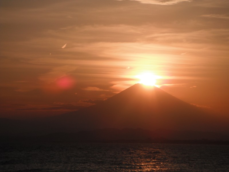 伊良湖中止以来、大幅モチダウン。18日には横浜が控えているんだけど、伊良湖を走ったような疲労感と足首の違和感で、どうもトレに身が入りません。そんな中、ダイヤモンド富士がきれいという書き込みをみて現場に行ってみました。言葉なんかいらないでしょう。