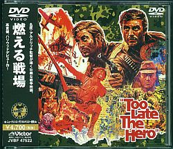 商品のストーリーとしてはネット上では1942年11月。南太平洋上ニュー・ヘブリデス島ではジャングルを隔てて日本軍とイギリス軍が対峙し、戦闘は膠着状態に陥っていた。日本軍はジャングルの奥深く無線通信所を持ち、他島との連絡がつくため、この方面の制空・海権は日本軍が握っていた。ためにアメリカ軍機動艦隊は行動を著しく制約されていた。そこで、日本語のできる将校をイギリス軍に派遣し、通信所を破壊し、首尾よく成功したら、逆無線を利用し、偽の連絡を出して日本軍を混乱させようと計略を立てた。アメリカ海軍のジョン・ノーラン大佐(ヘンリー・フォンダ)は、この任務を友人のサム・ローソン中尉(クリフ・ロバートソン)に負わせた。彼は、厭戦の気持ちが強い男だったが、命令であった。ヘブリデス島のイギリス部隊長はトンプソン中佐(ハリー・アンドリュース)だった。直ちに破壊工作隊が組織され、指揮官はホーンスビー大尉(デンホルム・エリオット)以下13名、その中にトッシュ・ハーン衛生兵(マイケル・ケイン)がいた。大尉はあまり有能ではなかった。日本軍と遭遇した偵察隊は数名の犠牲者を出した。その戦闘中キャンベル一等兵は戦死した日本兵の指を切り落として指輪を盗んだ。ハーン衛生兵な犠牲者を出した大尉の責任を追及して逮捕された。その後も色々な摩擦が起き、通信兵スコットが川に落ちて逆無線用の無電器をこわしてしまった。このため、大尉は破壊する前に日本軍の無電機を使う決心をした。ローソン中尉は反対だった。無線通信所の在所を見つけ、夜陰に乗じて破壊工作を開始した。ホーンスビー大尉、スコットと次々乗り込んだ、しかしローソン中尉は木陰に隠れたまま動かなかった。夜襲に気付いた日本軍と激しい戦闘が始まった。それでもローソン中尉は動かなかった。無電機は破壊したが、大尉は戦死した。生き残った偵察隊は退却した。途中、計らずも日本軍の空軍基地を発見し、そこには爆撃機が隠されてあった。帰還を急ぐ彼らに、突如ジャングル内の拡声器から英語で呼びかけてきた者がいた。日本軍の山口少佐(高倉健)であった。降伏すれば1週間後に釈放し、降伏しなければ捕らえて死刑に処すと言った。隊員達は動揺した。その夜、皆が寝しずまるとキャンベル一等兵が、重傷のソーントン一等兵(イアン・バネン)を殺し、他の戦友を誘って脱走した。残ったのはローソン中尉とハーン衛生兵だった。基地へ急ぐ2人に再び山口少佐の声が聞こえてきた。脱走した戦友を捕らえたというのだ。そして指輪を持っていたキャンベル一等兵は処刑し、他の戦友の命は2人が降伏するか否かにかかっていると言うのだった。ローソン中尉は、引き返すというハーン衛生兵の銃を取りあげ、彼を促して基地へ向かった。翌日未明、2人は山口少佐の呼びかけで、袋の鼠となったことを知った。そこで2人は、逆に少佐の声を手ずるに引き返して、山口少佐を狙撃した。2人は基地に近いジャングルの端まで逃げのびた。そこから基地までは遮蔽物のまったくくない平野だった。ジグザグ・コースに飛び出した2人にイギリス軍の援護射撃も加わった。しかし、基地にたどりついたのはハーン衛生兵ひとりであった。先刻射たれたのは誰かと聞かれた彼はこう答えた。「あれは英雄だ!」とありますが、第二次大戦下の南太平洋のある島で、日本軍とイギリス軍の激しい死闘を描いた戦争映画で、高倉健が日本軍兵士となり悪役を演じた、ロバート・アルドリッチ監督のバイオレンス戦争アクション。高倉健の海外初出演作でもありますが、出番は多くないものの、しっかりと存在感を示しており、戦争状況下での兵士達の心理をうまく描いた作品で、構成がうまい作品ともいえます。
