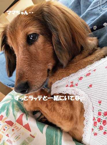 16年前の昨日、7月22日はラテと出会った日でしたわー💦親父さんの初七日と重なった。ラテがやって来た日を忘れてしまうとこだった(((^^;)危ない危ないε-(´∀`*)色々な事と、クッキーのお誕生日とラテがやって来た日がごちゃごちゃになって頭の中パルプンテ笑お祝いやらお悔やみやら、上がったり下がったり。でもね、ラテとはこんな風な緩々でいいんだ^^;ラテはクッキーに似てたから偶然パパちゃんの目に留まり、クッキーロスの私という大きな壁を簡単に突破し、速攻でわが家の一員になったから(笑)あの日出会った女の子はパパちゃんの手をおっきな手ってでギュッと握り締め、16年経った今と同じ瞳をしてる٩(๑>∀<๑)۶自分持ってそうな顔してるけど、その通りでした(爆)そんなとこ好きよ(*^^*)あれから丸っと16年だよ、早いね〜。ラテは全てクッキーのお下がりで生きてますわ〜(笑)ずっと付けてるオレンジの首輪とリードもクッキーの形見(*^^*)ケージもバリケンネルも何もかも・・・流石に食器とかは新しいけど。。「健康診断は家でする」と断って、挨拶がてら頼りにしてた変人とこ連れてった^^;「そんなもん要らん!」と血統書も断ったラテを着の身着のままササッと連れ帰ってきた日パパちゃんてやっぱり面白いわ〜٩(๑>∀<๑)۶顔とフォルムとインスピレーションそして、COOKIEの妹なのでlatteと名付けたあの日(*´ 艸`)何でも早い早い(((^^;)ラテ!あの日信じてくれてありがとうラテ!ずっと一緒にいてくれてありがとうラテ!ずっと元気でいてくれてありがとうラテ!好き嫌いなく何でも食べてくれてありがとうラテ!家に来てくれてホンマにありがとうな神様!ラテと出逢わせてくれてありがとうございますラテ!これからもず〜っと一緒に生きてこな、約束やからね!ちょ待てよ似のチビラテ(生後6ヶ月)16歳と3ヶ月、現在のおばばラテ٩(。•ω•。)و約(●´3`bd´ε`●d´ε`●)束年取ったなぁ・・・遊びに来てくれてありがとうございます<(_ _)>↓ポチっと応援していただけると嬉しいです。更新の励みになります^^にほんブログ村にほんブログ村ミニチュア・ダックスフンドランキング