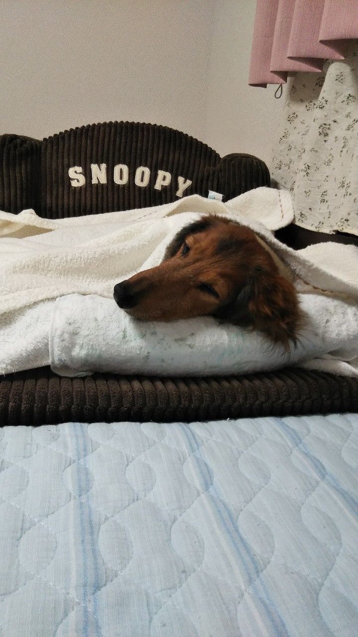 ラテが乳腺腫瘍摘出手術をした日から2Fで一緒に寝るようになった
