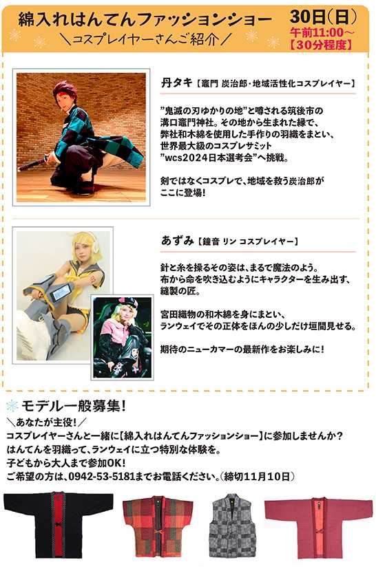 創業大正二年、福岡県筑後市のものづくりの会社の四代目。生地織り、デザイン企画、縫製まで全て自社で心地よい和木綿(わもめん)の服と綿入れ袢天を作っています。一男一女一犬の母。座右の銘:一燈照隅・笑門来福。