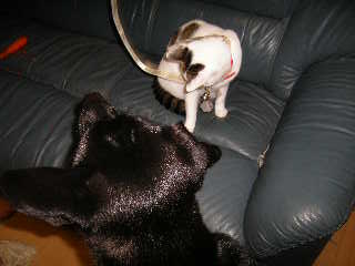 最近 リンとくろすけ少し慣れてきて 仲良くなったよぉ~~たとえば・・・・一緒に 階段の窓から外を 見ていますそして・・・・一つのソファーに 一緒に座ってますあらら・・・・リンたん なついてますね~~くろすけも 余裕のあくびですリンが噛まなくなったのとくろすけが リンに慣れてきたみたいです今日のリンたんはソファーと格闘するリン!! ↑クリックしてみてね~~!!