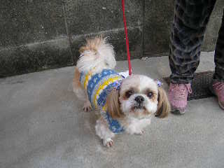 昨日 お店を出していてずーと 家に居たので動画を研究してみましたぜひ みんなに見せたかったリンVSたまちゃん ↑を クリックしてね楽しんで いただけましたかぁ~~~??今日のお客さまは シーズー君です写真は 去年買ってくれたベストですお着替えを 買いに来てくれましたベストをきた シーズー君 わんわんベストとセーターのお店開店