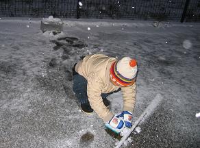 昨日の仕事中、夕方18:00。「nobinobiさん~、早よ帰らんば~、道路がシャーベットになりよるよ 」と、事務次長。慌てて外に飛び出すと(@スリッパ)、ぅひょぉ~、銀世界☆・・・まぢっスか・・・(ウチの職場、山の上だから雪が降るとすぐ積もる)勤務終了時間になると早々と職場を後にしてJr.のお迎えに。いつもなら保育園に着くころまでに車に積んだ雪は解けてるんだけど、解凍する事無く園に到着。Jr.が喜んだのは言うまでもありません。さて、朝です。イやぁ~ン、雪まみれェ~♪主人が朝ごはんを食べてる間に、車にチェーンを巻いたげる優しいア・タ・シ。・・・昨日、クリスマスプレゼント貰ったしなぁ~。主人が仕事に行った後、Jr.と雪遊びよ~♪ 雪だるまだって作りました。ビミョ~に筋肉痛。仕事が公休だった私。Jr.も保育園を休ませて(って言うか、行けなかった)まったりィ~と過ごしています。雪に慣れていない長崎人。夕方のニュースは事故の話題があるんだろうな・・・。(アパートの人もチェーン巻かずに出て行ってる人がいたなぁ。あっぶねェ!!)