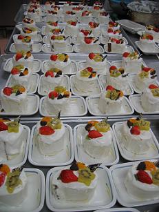 メリー・クリスマス!クリスマス・イヴの今日、皆さんはいかがお過ごしですか~?私は職場でケーキ作ってきましたよ。予告通り270ヶ。使用した生クリーム、13リットル。・・・もう、しばらく生クリームの香りを嗅ぎたくないです。こんなカンジ 患者様も喜んでくれました。が、女性の患者様が、やってくれました。ケーキを3口で完食!・・・ちゃんと噛んで食べてちょうだい。職場で腹いっぱいケーキを見てきたので、家でのケーキは無し。(自己中な私)Jr.は主人の実家でケーキ食べてるんだろうな~。主人が気を利かせてシャンパンを買ってきてくれました。ケーキは無くとも、クリスマスの雰囲気は十分味わいました~♪あと、年賀状作成がようやく終わりました。どうにか元旦には届きそうです。