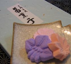正月に実家に帰った時、母より貰った葛菓子です。(形に季節感が無いが・・・)そのまま食べずに、湯飲みに2ヶ入れて熱湯を注いで「葛湯」にしていただいてます。何とな~く、和風な気分になってます。**********************************イトコの出産祝いを買いに行ってきました。男の子と言うこともあり、結局、ナイキの洋服にしました。(女の子の出産祝いは、必ずピンクハウスにしてます。だって、Jr.着せられないんだもん)悩んだ末、カバーオールとジャンバーにしました。あと、ついでにJr.のリュックも購入。いつ渡そうかな~、やっぱり郵送した方がいいかなぁ?