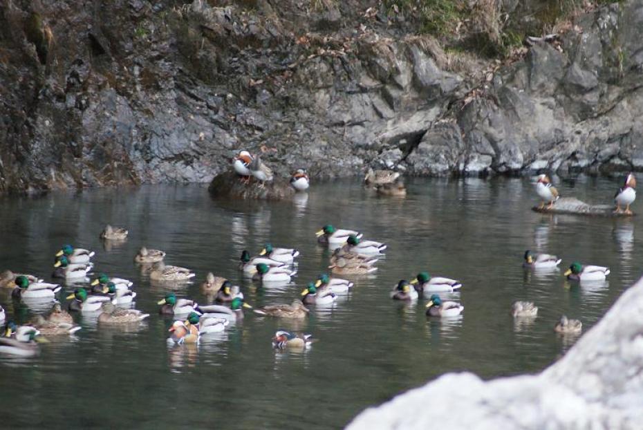 10:18 晴れ新年からずっと、今日も晴天が続いています。さて、この楽天ブログも開設後いつの間にか2000日を突破していました。期間にして5年余になりますが、おかげ様で最近では殆ど毎日のブログ更新を維持しています。最近では、若い人主体のアメーバブログにも熱中していますがそれでもメインのブログは楽天をリンクさせて戴いています。楽天ブログは最近ではちょっと人気が下降気味だと思われますが、それでも私にとっては相変わらず魅力いっぱいのブログです・・・私も、他にヤフーブログや、MIXYも、ココログなどもやっていますがいずれも今一、熱中できるほどではありません。MSNはコミュニティーを主体に利用させていただいてきましたが、最近突然サービスを中止するとの通知がありました。後継するサイトも紹介してもらいましたが、どうも今一かなり使いにくいようでがっかりしています。楽天さんにはこの先も、ずっと頑張って行って欲しいと願っています・・・-------------------------秋葉神社の野生?鹿・・・ ----------------------21:30午後、友人と今年初めて設楽町田峯のオシドリの里へ行ってきました。現地へは午後、3時半頃到着しましたが、あいにくオシドリも鴨も全くいませんでした。管理人の伊藤さんのお話では最近天敵の熊鷹を警戒してかなり警戒心が強いようでした。仕方なく、近くの田峯観音へ初詣に行きまして、4時半頃再度訪問しましたがまだいませんでした。でも、4時45分頃になって薄暗くなってしまった川面にやっと数十羽の鴨やオシドリ達が静かに姿を現しました。帰宅すると既に6時過ぎになっていました。ーーーーーーーーーーーーー空中神社・秋葉・・・