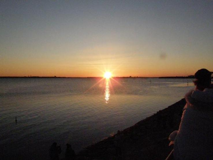 21:30 晴れ皆さん、明けましておめでとうございます。今日も寒い日でした。昨夜は12時から近くのお宮へ初参りに行ってきました。今朝は6時頃車で表鷲津の広場へ詩吟クラブ会員の初日参りをしてきました。日の出直前に先生を中心に皆で合吟をしました。寒い中で戴いた熱々の豚汁は最高でした。朝9時からは菩提寺の新年ご祈祷会のお手伝いをしました。11時半からは来場の磐田市出身の落語家・三笑亭可女次さんによる落語公演を本堂で聞きました。落語を生で聴いたのは初めてでしたので、凄く新鮮でした。後半の演題はある町人が美人の花魁(おいらん)と一緒になるお話しでした。その後、公演者の若者や和尚さんたちとお酒をいただきながら会食をしました。ーーーーーーーーーーーーーーーさて、新年を迎えて気持ちを一新して改めて今年も、世界平和実現に向かって精一杯の努力をして行きたいと思います。ガザ地区のパレスチナ難民とイスラエル軍の軍事衝突は依然として続いており、憎しみの連鎖は新たな憎しみを加速させるばかりです。そんな中で先ほど、NHKのニューイヤーコンサートで指揮者の方がイスラエル国籍で、積極的にイスラエル人とパレスチナ人の合同コンサートを進めていることをお聞きして感動しました。『渡り鳥が結ぶ友和の会』への皆様方の一層のご支援・ご協力をお願い申し上げます。-----------------------表鷲津の初日の出・・・
