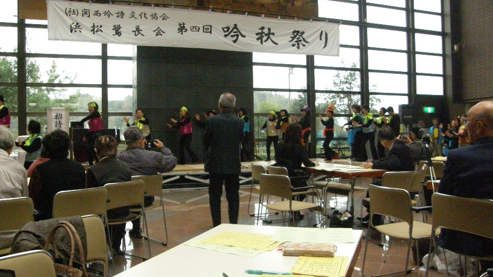 6:17 今日は8:45に家を出て、雄踏町文化ホールで浜松鷺長会の秋季詩吟練成大会があります。今日は競吟種目はありませんので、ゆったり楽しんでくる予定です。------------昨日のドレミファフェスタ風景・・・-----------------------------20:24吟祭りは楽しい中で午後4時頃には終わりました。