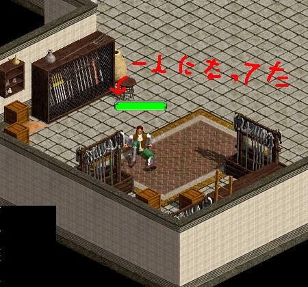 昨日は久しぶりにギルメンのみんなが集まり、狩りに行くことに。待ち合わせ場所はいつも通り、ワリドおじさんの経営している武器屋さん。だんだんメンバーが集まってきて会話がはずむ。しかし、人数が多いと発言が少なくなってくる僕はだんだんと放置気味に・・・。気づいた時には・・・・一人でした。↓ ↓ ↓ ↓ ↓ ↓ ↓ ↓ ↓ ↓とりあえず記念(?)に一枚SSを撮って見たw起きたのは・・・4時くらい^^;しかもなぜかちゃんとベッドで寝てた・・・orzその後、まだいた友達と遊びましたとさ。狩りに参加できなくて、ギルメンの皆様申し訳ありませんでしたー。耳打ちにも返事できなくてごめんよぅ><