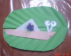 今日の幼児教室は梅雨の説明と歌の発表。 週一回3時間預けている幼児教室、あいかはとても楽しみにしている様子行きの電車の中で、何作るのかな?と聞いてきます。うちは面接だけなので、受験対策で幼児教室へ行かせている訳ではありませんが、他のお母さんたちはそろそろ受験先も決まり、先生方はその対策を始めているみたいです。帰りのマザーリング中に一日の概略を説明して下さいますが、今回は「みんなの前で発表する。」という課題だったみたい。幼児教室3時間の内容の事は、子供に聞かないように・・・(3歳の子に、3時間の内容を説明させるのは無理があるからという理由らしい。)と先生に言われているので、何をしたか本人から聞いていないので詳細は不明。幼児教室の今日の作品 かたつむりを作ったそうです。実家では・・・舞台にあがり、壇上で名前を言ってから「かたつむり」を歌ってみせました。家族一同の拍手を受けて、満足そうなあいか幼児教室でやった事を、自宅でやっているようです。