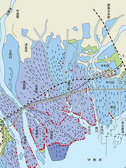 伊勢湾の水が津波のごとく