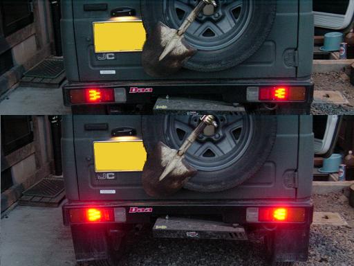 今日は連休中日です。前から作成していたLEDをテールランプに埋め込みました。上がライトON時下がブレーキランプ点灯時なかなかよくできていると思いませんか?ジムニーのテールランプはW球ですので難しかったですo(≧u≦)oこれで夜間の電力不足も少し改善されたかな~