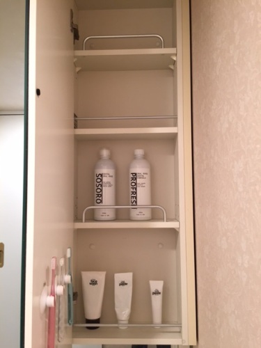 ご訪問どうもありがとうございます。とうとう冬?って感じに寒さが増してきましたね。今回は、先日に続き、洗面コーナーすっきりさせた鏡裏側の収納です。洗面台の上は三面鏡になっています。向かって右側の収納 ↓歯ブラシは、以前、ダイソーで購入した吸盤に付けています。これ、最近は見かけません。扉裏が活用できるので、便利なんですけどね。キャンドゥには、2個連結の歯ブラシ用の吸盤がありましたけど。下段の一番右側の小さなチューブ、ワンコ用の歯磨きペーストです。もともと白いカバーでしたけど、人間用のチューブとお揃いのラベルつけてます(^^ゞなんと、チキン味(+o+)スッキリ爽やかではありません。ただ、歯磨き嫌がるので買ってみました。不思議そうに嗅いでいるけど、やはり嫌がります(-_-;)(ワンコの歯ブラシは上の方の段に隠れてます) 真ん中の鏡の裏は、こんな感じ ↓セリアで購入した上段のポット3つには、それぞれ、歯ブラシや髭剃りとかのストック2段目は、キャンドルのストック、かわいいタッシェリーニにはキャンドルホルダーとライター相変わらず、バスルームを暗くしてキャンドル灯して癒しの音楽でのバスタイム、たまにやってます(^^ゞ ハンドタオルは、今、洗濯中なので在庫少ないです。 向かって左側は ↓上段は、旦那さんのもの、カラフルなのでポットに隠してます。下段は、基礎化粧品入浴後すぐ使うものをここに置いてます。 物が、だいぶ厳選されてきました。 常に、増やすことより減らすことを考えるようになってきました。少しでも、好きでない掃除を楽にしたいからです(^^ゞミッドタウンで食事をして今年のイルミネーションを見ました。クリスマスは人がたくさんなので、今が見やすい(^^ゞ車で六本木ヒルズを通って帰りました。毎年見るこの光景年とってくると、車内から見るだけで十分満足です(^-^)皆様のご訪問励みになります。↓をポチッと押していただけたらうれしいです。