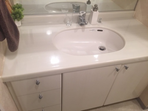 訪問どうもありがとうございます。私がブログを始めたころ、洗面台の上はこんな感じでした↓その時は、きれいに並べているつもりでしたが、結構ごちゃごちゃ並んでました(^^ゞ その後は、↓ ティッシュペーパーとかは引き出しに収納して、台の上を少しずつすっきりさせていきました。 今は、こんな感じ↓基本一人暮らしになったので、コップを置くのもやめました。以前、「くろとにゃんらーず」のがぉさんが記事にされてたオートディスペンサー(がぉさんのその時の記事→ ★)それまで、考えたこともなかったんですが、なんかすごく便利そうで欲しくなりました(^^ゞ私が選ぶなら、いつもは絶対、白最優先なんですが、機械物はすぐダメになることはなさそうだし、いろいろ見て、これを買ってみました。水道の蛇口と同じステンレス製のもの。量の調節を赤いランプで示す紫の部分、これは、ビニテで覆いました(^^ゞ台座が付いてますが、つけるとカッコ悪いので、底はカッティングシートで覆ってます。時計は、小さいものを脇の壁に掛けました(白じゃないけど(^^ゞ)もう、これ以上は物を減らせないかな(^^ゞ台の上の掃除はめちゃくちゃ楽になってます(^-^) 皆様のご訪問励みになってます。↓をポチッと押していただけたらうれしいです。