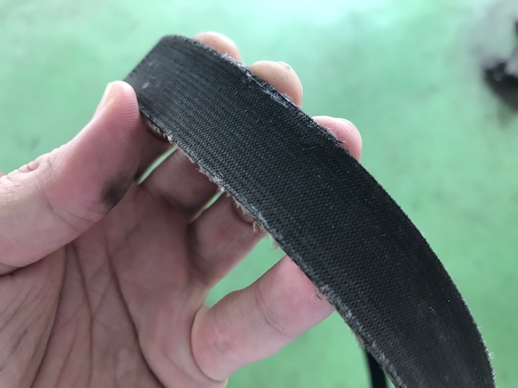 ベルトを引っこ抜いて見ると 端っこの方が擦れてました...
