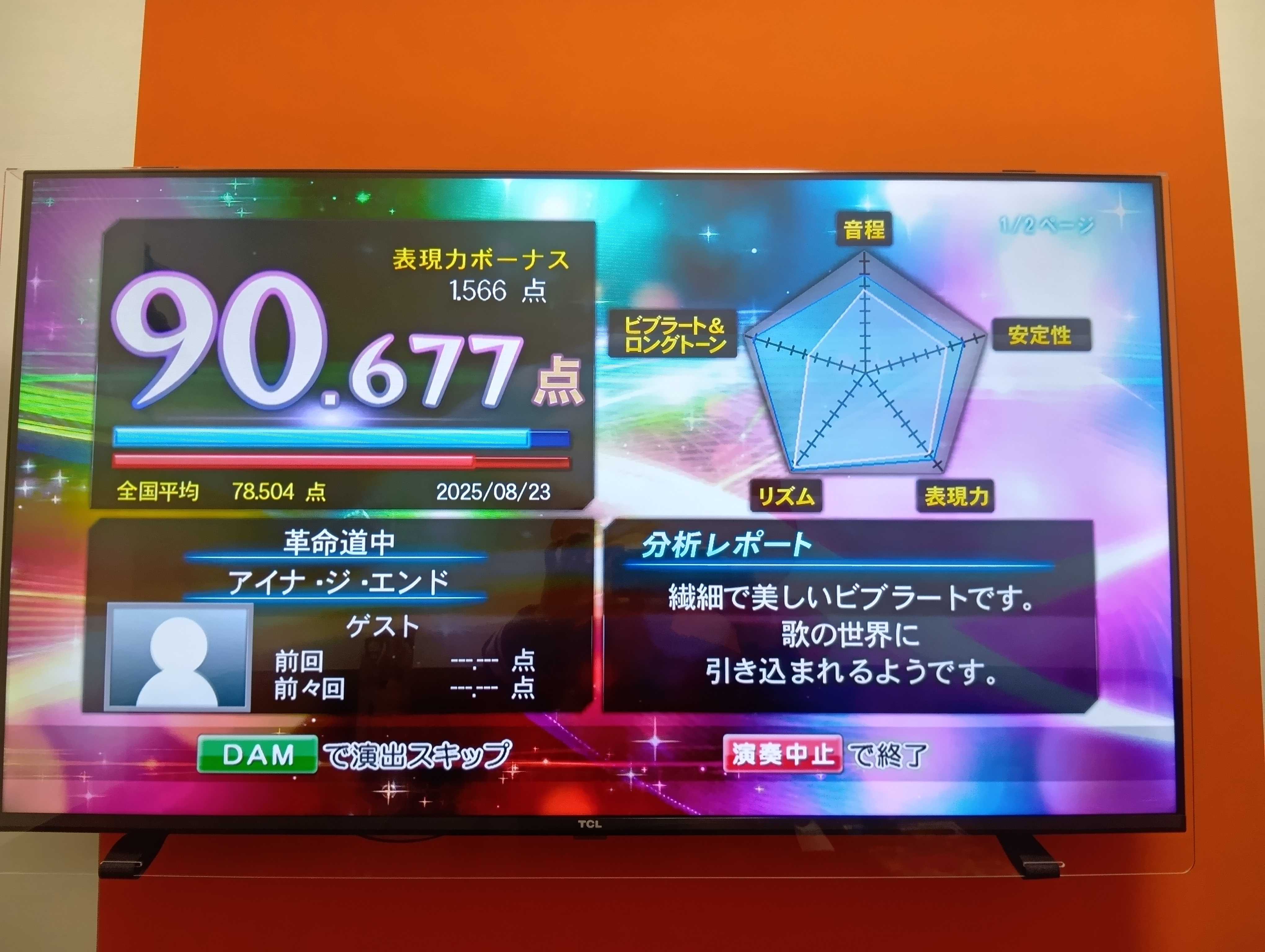 ギリギリ90点でした🎤 何か分析レポートで、DAMにめっちゃ褒められてて(笑)
