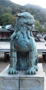 地元のお姉さんに教えてもらった青銅製?の狛犬、オスとメス
