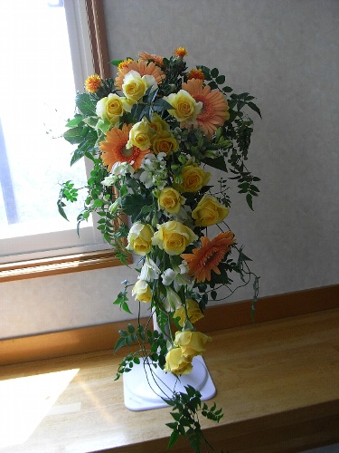 ガーベラ、紅花、SPバラ、アルストロメリア、ジャスミン生徒作品