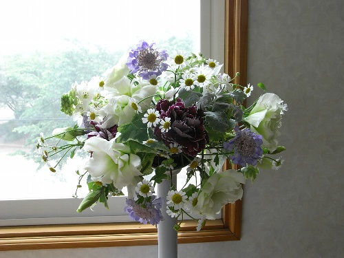 カーネーション、スカビオーサ、マトリカリヤ、トルコキキョウ生徒作品
