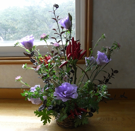 トルコキキョウ、ロフォミルタス、トウガラシ、アスター生徒作品