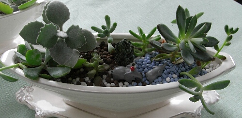 多肉植物をネオコール(室内用培養土)に植え込みました生徒作品