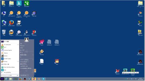 魔術師です。これのおかげで Windows8 に移行出来ました。そして Windows7 に劣るところが無いとまで言えたのはこのソフトのおかげです。Windows8 の時は日本語化された ClassicShell-J【フリーウェア】Windows8にスタートボタンを付ける「Classic Shell 3.6.6J」これがあったため移行出来ました。でも 4月から更新がありません。Windows 8.1 に対応はClassicShell 3.7.8 以降だそうです。意を決してオリジナルの ClassicShell 4.0.0 を入れて見ると何とビックリ、既に日本語対応していました。言語設定の中に日本語があったのです。なーんだ、上記リンク先で日本語対応版をずっと待ってたのですけど、必要なかったのだな。Windows8.1 のスタートメニューにWindows8.1 のスタートボタンを置き換えてスタートメニューが出て来ます。これは素晴らしい。起動時は当然 Metro 画面はスキップしてデスクトップが表示されます。>たがめさん狐のお面のようなアイコン、左上の宇宙人のグレイの顔のアイコンですかね。foobar2000 と言う高機能ミュージックプレイヤーWAV から MP3 への変換に使っています。右下の赤い狐アイコンは DVD と BD をゴニョゴニョする、えっとハッキリ言えません。人気記事の一覧のあるトップへ星影の魔術師に応援のクリックをポチッとお願いします。 皆さんの、協力に感謝しています。
