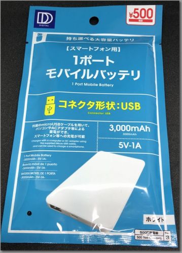 魔術師です。100均探偵団のコーナーです。昨日は焼き鳥を食べた後にダイソーに行きました。その時に買ったものです。コレが噂の 500円モバイルバッテリー3000mAh なのでスマホを1回満タンに出来るかどうかと言う感じです。300円で 2000mAh のモバイルバッテリーはよかった。ラジオペンチちゃんとしたヤツをパートナーにギンナンを割るのに取られたので代わりにバッグの中に入れる筆入れ昔懐かしいエチケットブラシお気に入りの 3口タップ同じ500円のモバイルバッテリーはコッチの方がいいです。処分価格でも 2A の出力が取れるのでタブレットにも充電出来るし速いです。容量が大きいし【月間優良ショップ】 iPhoneX対応宅急便【送料無料】大容量モバイルバッテリーiPhone スマホ Android対応MicroUSB60cm充電ケーブル付【ゴールド】ILU50A-CSG 大容量 軽量【ゆうパケット配送】【ポイント 倍】【20P03Dec16】【月間優良ショップ】 iPhoneX対応宅急便【送料無料】大容量モバイルバッテリーiPhone スマホ Android対応MicroUSB60cm充電ケーブル付【シルバー】ILU60A-CSS大容量 軽量【ゆうパケット配送】【ポイント 倍】【20P03Dec16】【月間優良ショップ】 iPhoneX対応宅急便【送料無料】大容量モバイルバッテリーiPhone スマホ Android対応MicroUSB60cm充電ケーブル付【ブラック】ILU80A-CSK 大容量 同時充電 軽量【ゆうパケット配送】【ポイント 倍】【20P03Dec16】人気記事の一覧のあるトップへ楽天のサービス紹介ページへ飛ぶ星影の魔術師に応援のクリックをポチッとお願いします。 皆さんの、協力に感謝しています。
