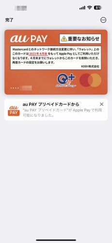 魔術師です。au Pay プリペイドカードが Apple Pay で使えなくなってしまいます。YouTube のおトク情報を見ていて知りました。4月中に au Pay プリペイドカードを登録し直さないと今後使えなくなると確かに警告が出ていました登録完了これで一安心魔術師も対象だとは気が付きませんでした。YouTube 動画を見てなかったらこのまま失効していたところでした。au Pay プリペイドカードはスマホ QR 決済の au Pay にチャージした残高と連携していて残高分だけクレジットカードとして使えるのです。QR 決済に対応していない店舗でもクレジットカードなら使える場合にと Apple Pay に登録しています。プリペイドカードは au Pay を登録したら勝手に送って来たのだと思います。実際は他の支払い方法を使うので使ってないのですけどね。マグネットケーブルの Type-C コネクタの在庫がなくなったのでアリエクで注文しましたマグネットケーブルはこんなの【メール便 送料無料】1m 楕円型 急速充電 QC3.0 9V 対応 データ転送 可能 充電 マグネット ケーブル 両面挿し 磁石 コネクタ脱着 充電ケーブル iPhoneX MicroUSB Lightning Type-C スマホ スマートフォン Androidことの始まりはパートナーの充電ケーブルがボロボロになっていたので丈夫なメッシュケーブルに変えて、次にマグネットケーブルにしました。コネクタ部分がマグネットでワンタッチで付け外しが出来るのでケーブルに負担がかかりません。最初のマグネットケーブルは MicroUSB Type-C Lightning とそれぞれ別のコネクタとケーブルでコネクタ間で互換性がありませんでした。結構投資していたのですが捨てて、別の種類のコネクタでも同じケーブルにつないで使える物にして現在に至っています。最近は Type-C の端末も増えて来ていて先日手に入れた Rakuten Hand 5G も Type-C で Type-C コネクタを使い切ってしまいました。基本的な充電に関しては不満はありません。不満な点は USB3.0 通信が出来ないことと、USB PD 充電が出来ないことです。何かいい手はないものか。今日は先日衝動買いしたミニ PC が入ってくる予定です。安い割りにかなりの性能らしいので楽しみです。とは言えローエンド CPU なので知れてますけどね。あとジャックダニエルの大瓶も届く予定です。佐川なんで朝会が始まる時間に来るかも、来るなら始まる前に来てね。人気記事の一覧のあるトップへ楽天のサービス紹介ページへ飛ぶ星影の魔術師に応援のクリックをポチッとお願いします。 皆さんの、協力に感謝しています。