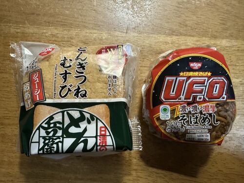 魔術師です。紹介が遅くなりました。3/30 1週間以上前に手に入れて撮影していたファミマのコラボむすびです。今回は日清とのコラボでした。どんぎつねむすびと UFO むすびUFO むすびはそばめしでした。それも焼そば UFO の濃厚ソースでどんぎつねむすびは出汁ごはんにお揚げが載っていて素直に美味しい。揚げが載っているだけでちょっと食べにくいのはありました。何で稲荷のように揚げの中に包んで入れないのかって思ってしまいました。それとどん兵衛である必要はまったくないけど美味しかったです。今日は来月の G7 連休のしわ寄せで平日として出勤なのですが、予定通り休むようにしました。後から考えると週明けの月曜日を休みにする手もありました。ただ週初めから休むのは問題だと思われる可能性がありますけどね。5月の G7 明けの週の土曜日の出勤の時は翌週月曜に休むようにする予定です。人気記事の一覧のあるトップへ楽天のサービス紹介ページへ飛ぶ星影の魔術師に応援のクリックをポチッとお願いします。 皆さんの、協力に感謝しています。