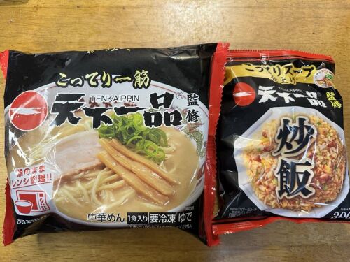 魔術師です。ローソンに天下一品の冷凍ラーメンがあると言う話を聞いて手に入れたくなりました。これがどうやらかなりの再現性らしく、期待が膨らみます。晴れていたら散歩がてら買いに行こうかと思ったのですが、昨日はあいにくと天気も悪く 1日中雨だったので Uber で確認すると商品一覧の中にあるではないですか!と言うことで雨の中 Uber でお願いしました。ラッキーなことに 2000円上限の半額クーポンもありました。天下一品監修の冷凍ラーメンと冷凍チャーハンですとりあえず手に入れただけですけど近い内に食べて見ましょう。ローソンのホットスナックも一緒に手に入れて晩に食べました。定番の Lチキとパリチキと言うのもあったので注文したけど、半分ずつ分けて食べたのですが、どちらがどちらか判りません。濃い色の衣のチキンの方が味が濃かったです。サラダは作ってくれて、本来の晩ごはんはコストコで手に入れた吊るしベーコンでスパゲッティナポリタンを作る予定でしたが、サラダを食べてチキンとアメリカンドッグを食べるとお腹いっぱいになってしまったのでそれで終わりにしました。購入した製品のレビュー投稿完了一応ありのままの感想でレビューしたけど、これはサクラレビューに加担してしまったか。今日で GW 連休もついに最終日となりました。あっと言う間でした。明日から通勤生活がまた始まります。ただし 2週間出勤したら G7 サミット連休になるのでそれまでの辛抱だw今週 1週間はフルに出るけど、週末に事務所内のレイアウトをコロナ対策のため間隔を開け仕切りを設けた席の並びから通常の過密状態にレイアウト変更をする予定です。今年の夏は人が密集するので暑そうです。来週は週中の木曜日から連休に突入します。人気記事の一覧のあるトップへ楽天のサービス紹介ページへ飛ぶ星影の魔術師に応援のクリックをポチッとお願いします。 皆さんの、協力に感謝しています。